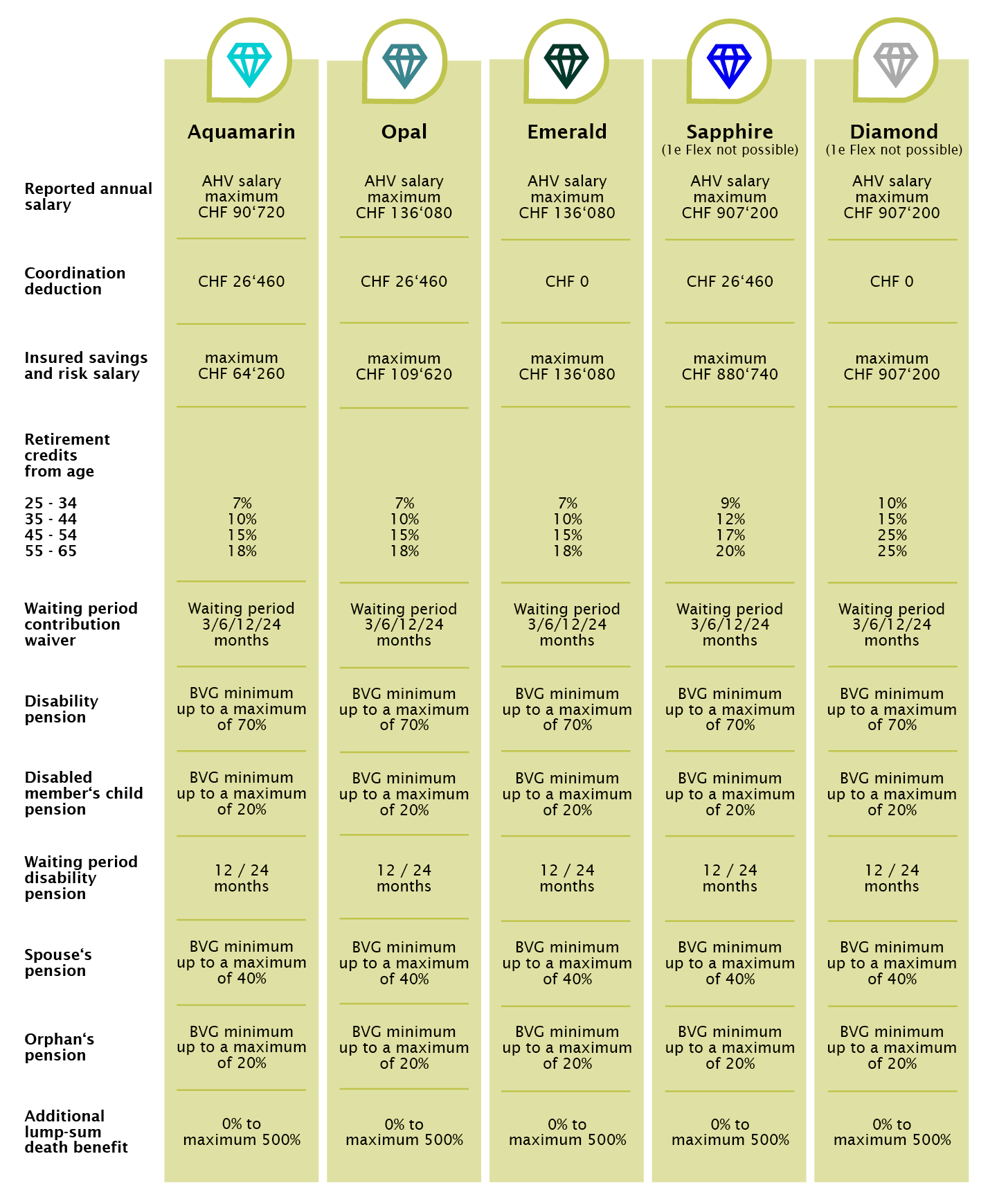 Self-employed persons are not subject to mandatory occupational benefits. They have the option of voluntary coverage through the Swiss Association of Entrepreneurs.