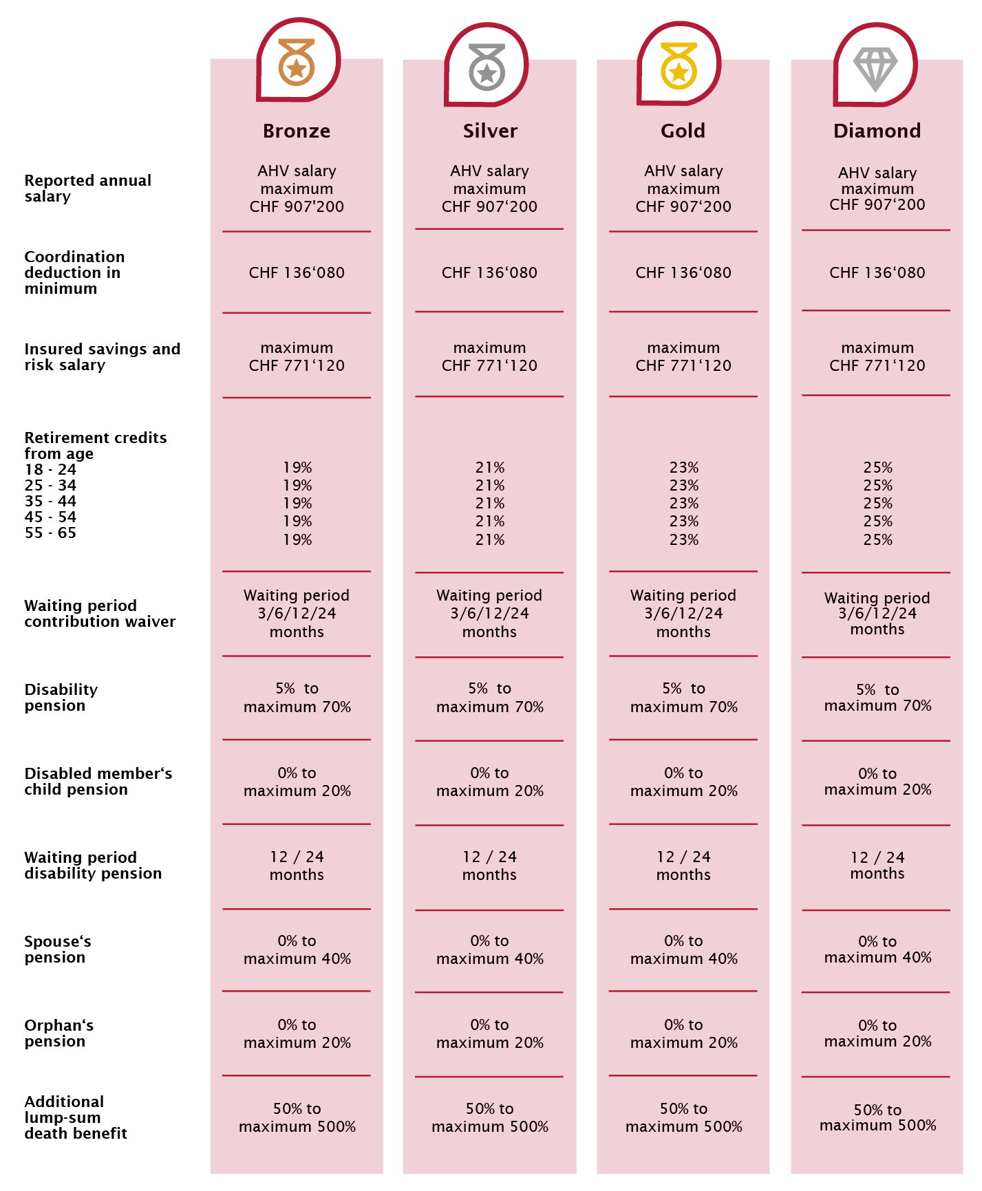 Self-employed athletes, sports consultants, sports planners, sports managers, sports coaches, physiotherapists and those in related professions in the sports industry can choose their BVG pension solution from one of four predefined plans.