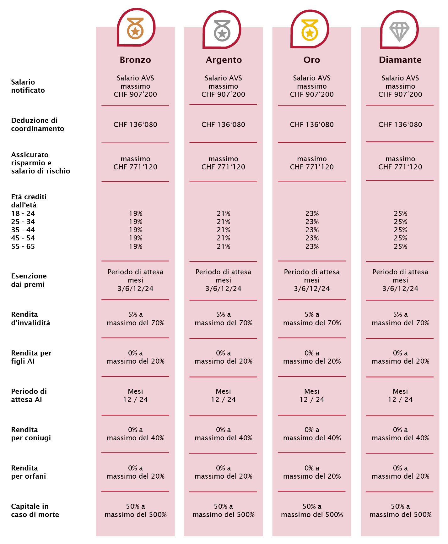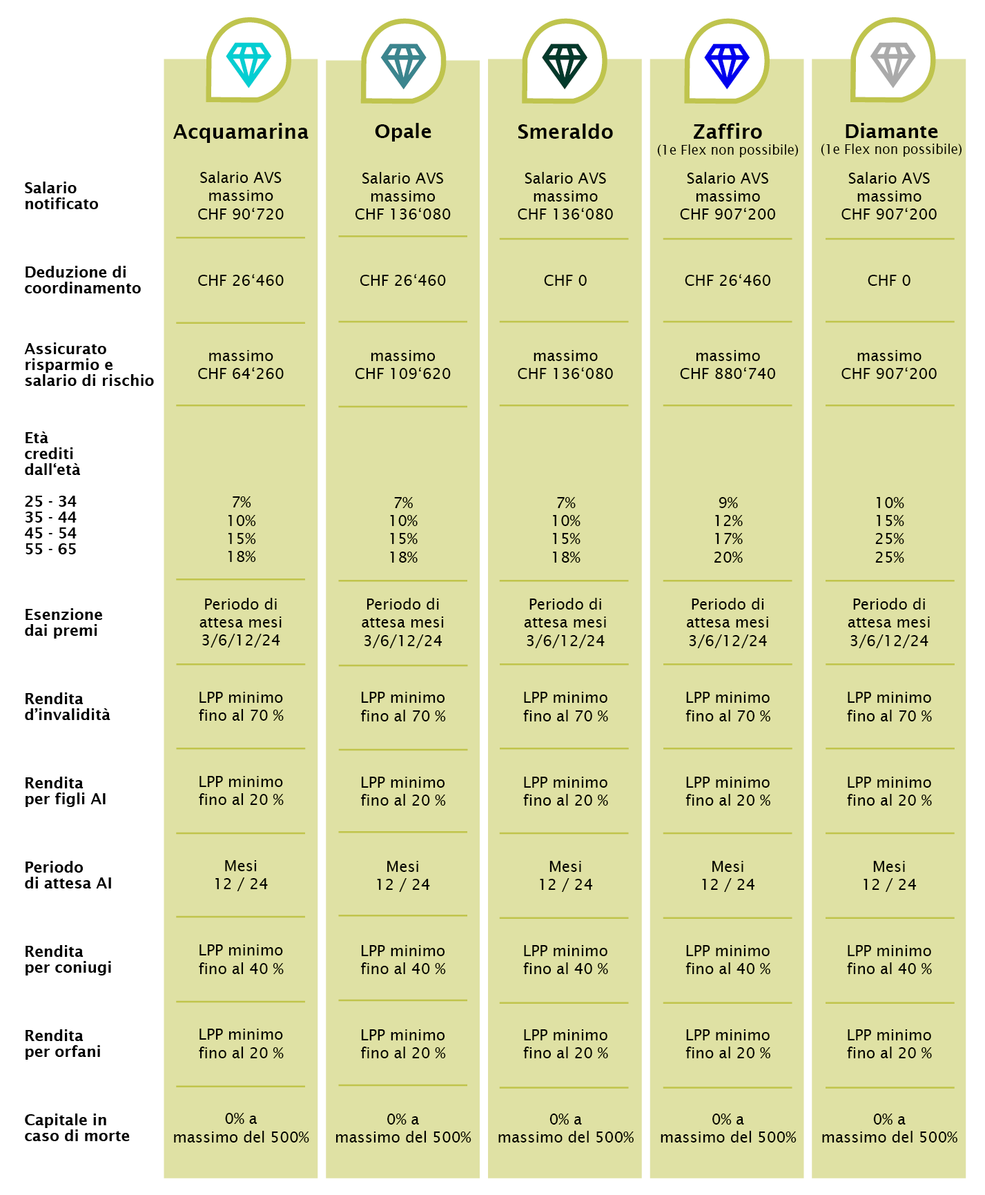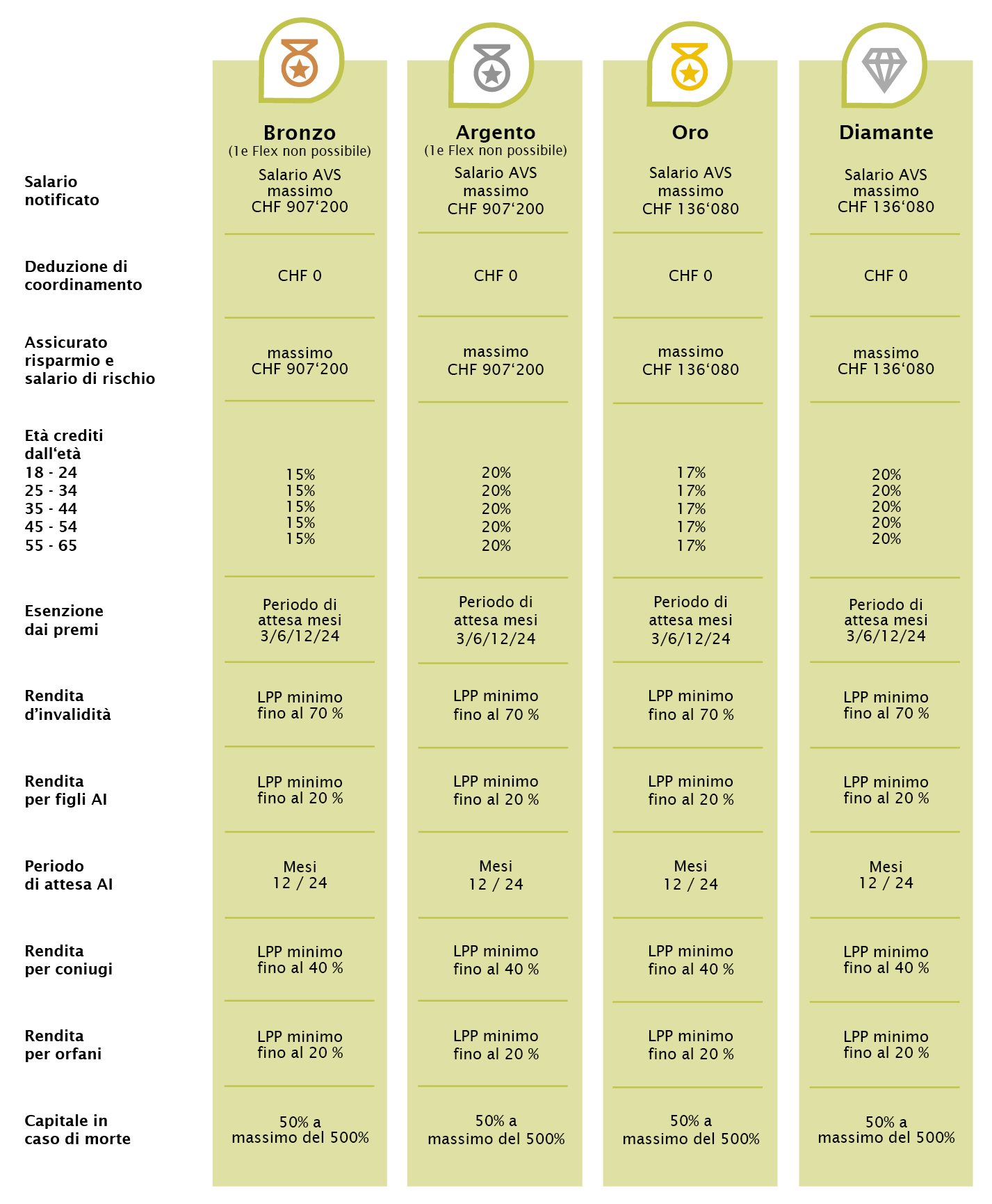 I membri possono accedere a chiare soluzioni di previdenza per coprire i rischi derivanti da vecchiaia, decesso e invalidità. L’Associazione intende offrire ai propri membri soluzioni di previdenza moderne e all’avanguardia, con interessanti premi di rischio.